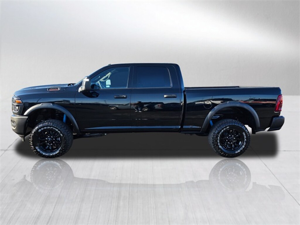 Diamond Black Crystal Pearl exterior, Tradesman Level 1 Equipment group, Power Wagon Package, 17-inch black painted aluminum wheels, Tru-Lok front/rear axles, powder-coated front/rear bumpers, black wheel flares, Ram Articulink suspension, front/rear performance-tuned shocks, front disconnecting stabilizer bar, all-terrain tires, front electric winch, fuel tank and transfer case skid plates, 400W inverter, rear power-sliding window, exterior 115V AC outlet, carpet floor covering, ParkSense front/rear park-assist, mirror-mounted supplemental signals, heated and power-adjustable mirrors with manual fold/telescope. Price does not include Taxes, Tags, License, & Doc Fees. Not all customers qualify for all rebates.$2000 - 2025 National Bonus Cash . Exp. 02/02/2026 $2000 - 2025 National Select Inventory Bonus Cash w/ 3FV . Exp. 02/02/2026