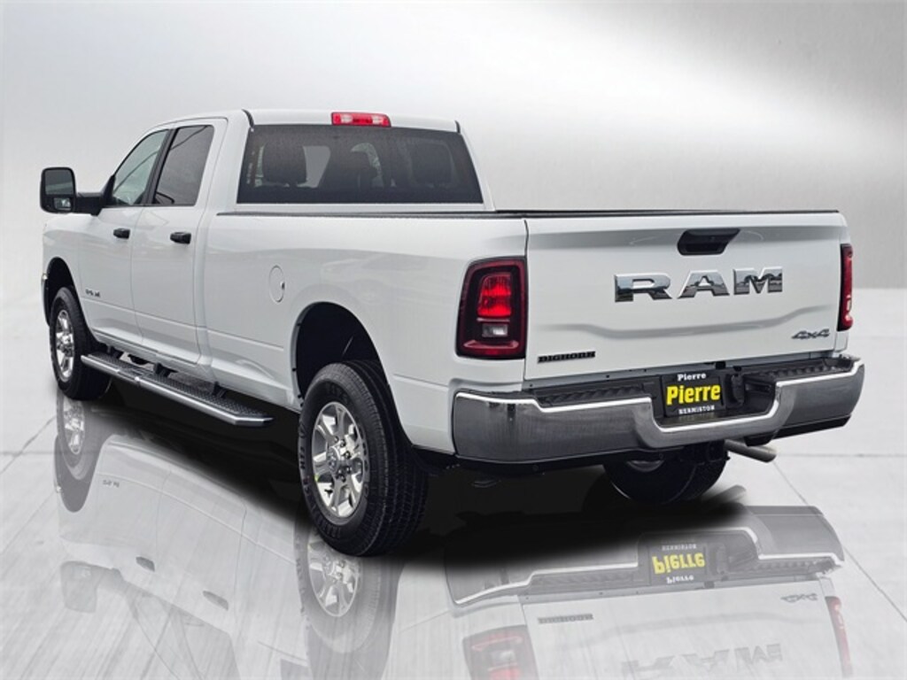 Technology & Connectivity: The Ram 2500 Big Horn is equipped with the Uconnect 5 system featuring an 8.4-inch touchscreen, as well as Uconnect 5 Navigation with a 12-inch touchscreen. Connectivity features include Apple CarPlay, Google Android Auto, integrated voice command, SiriusXM capability, SiriusXM 360L, Ram Connect connected services, a 4G LTE Wi-Fi hotspot, and a premium Alpine audio system with nine speakers and a subwoofer. Steering-wheel-mounted audio controls and trailer tow pages further enhance convenience and control.